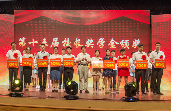 晚会上,党委书记徐剑波代表学校接受2017届毕业生代表捐赠,并为他们颁发捐赠证书。校长张宪省为获得第十五届校长奖学金的毕业生颁奖。